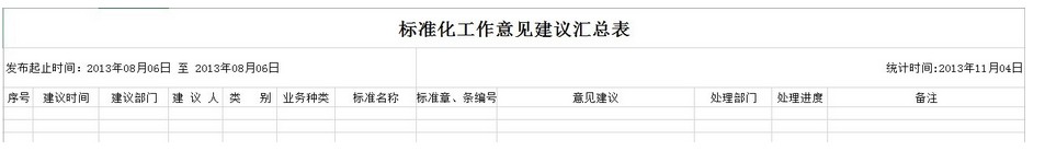 cells[0, 0].PutValue("标准化工作意见建议汇总表"); //填写内容