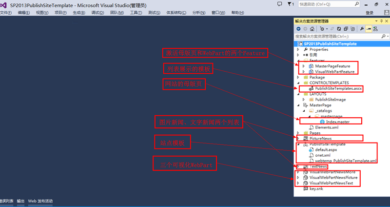 一直以来所接触的SharePoint开发,都是Designer配合Visual Studio,前者设计页面,后者开发功能,相互合作,完成SharePoint网站开发。直到SharePoint 2013接触站点模板,才发现站点也可以直接通过VS来进行开发,创建母版页、页面、WebPart、列表、列表项、网站栏等等,完成一个站点的开发。