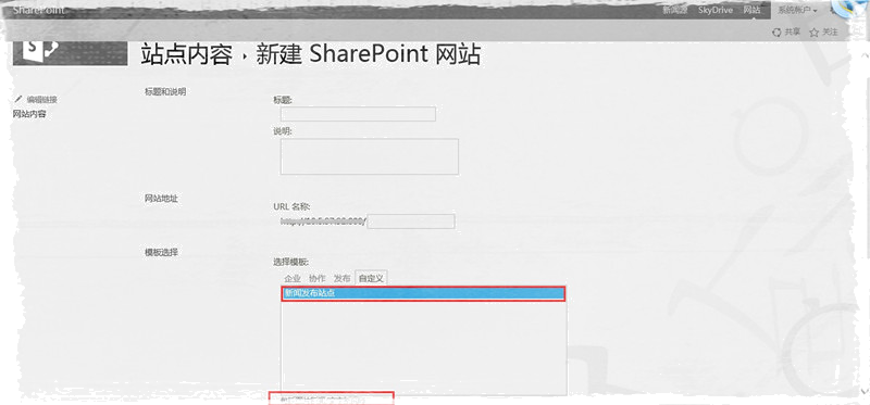 以上,便是SharePoint模板开发过程的简单描述,开发完成后,使用Visual Studio自带的打包功能,部署到服务器上,即可。在添加网站集的时候,就会看到相应的站点模板,如下图。
